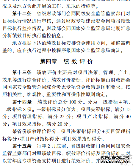 安全生產(chǎn)預(yù)防及應(yīng)急專(zhuān)項(xiàng) 資金績(jī)效管理暫行辦法
