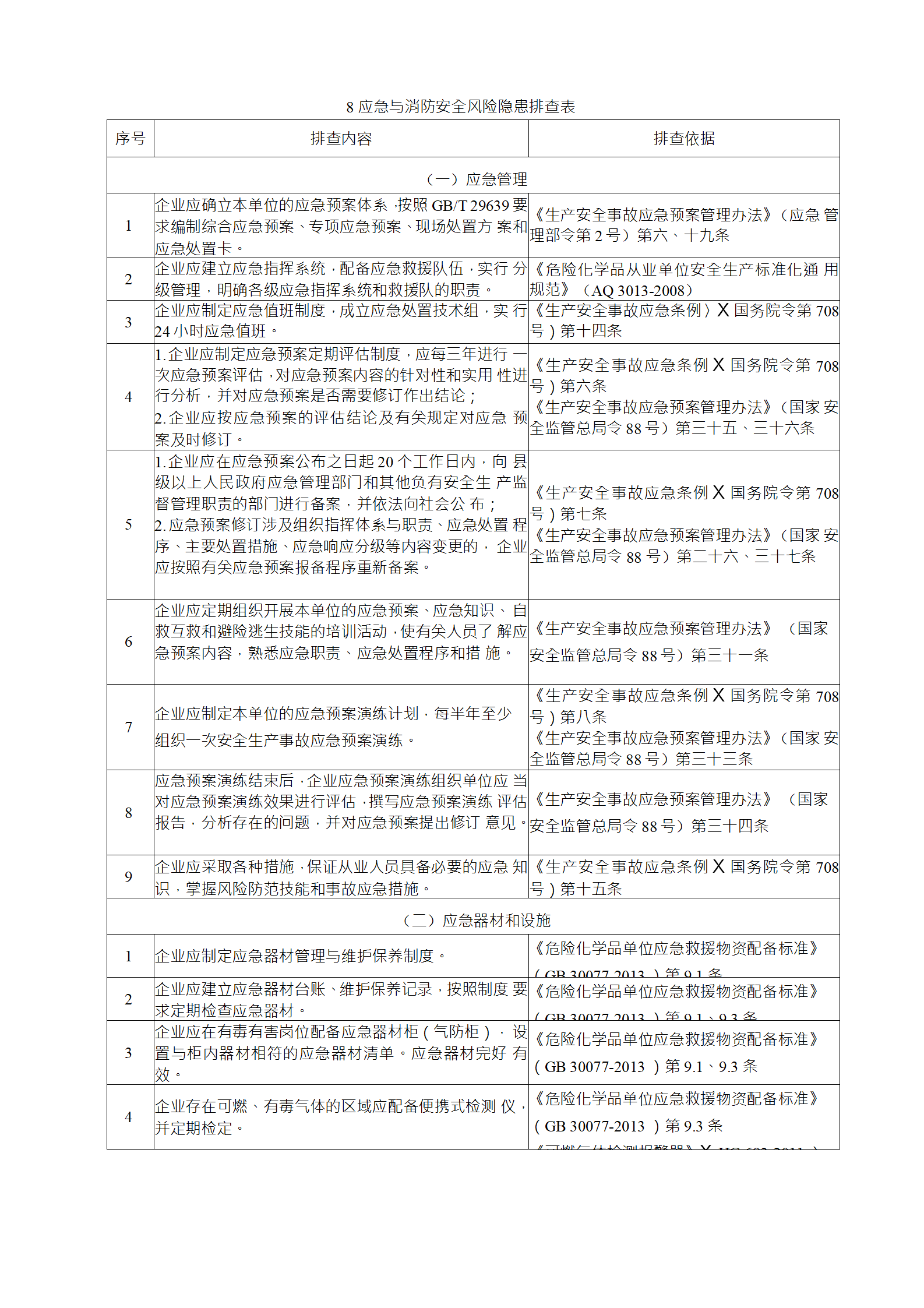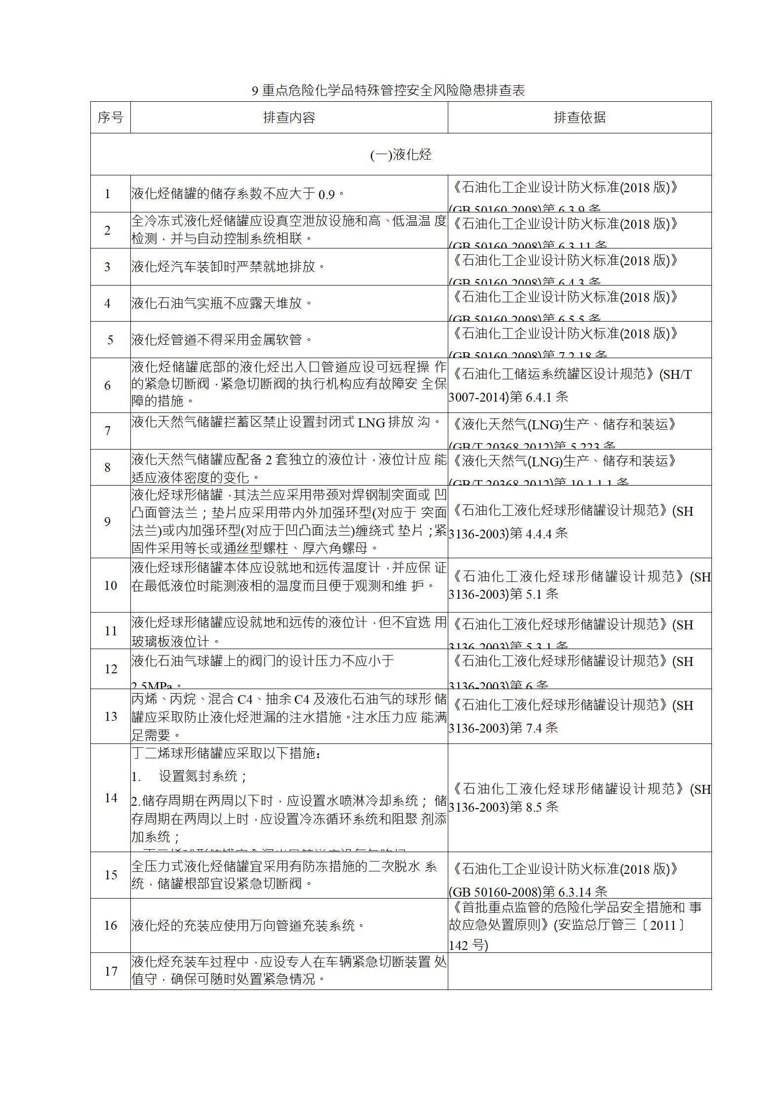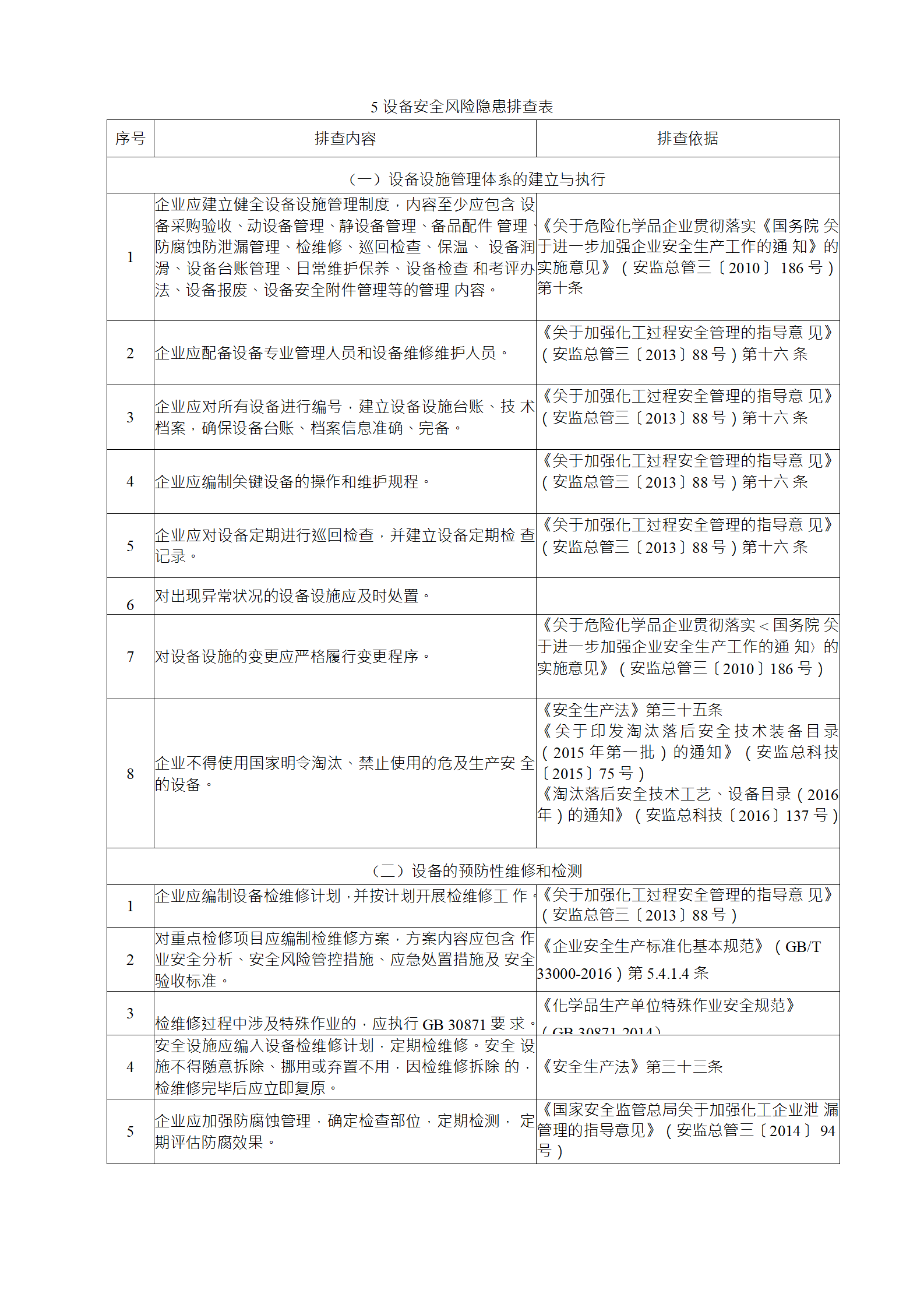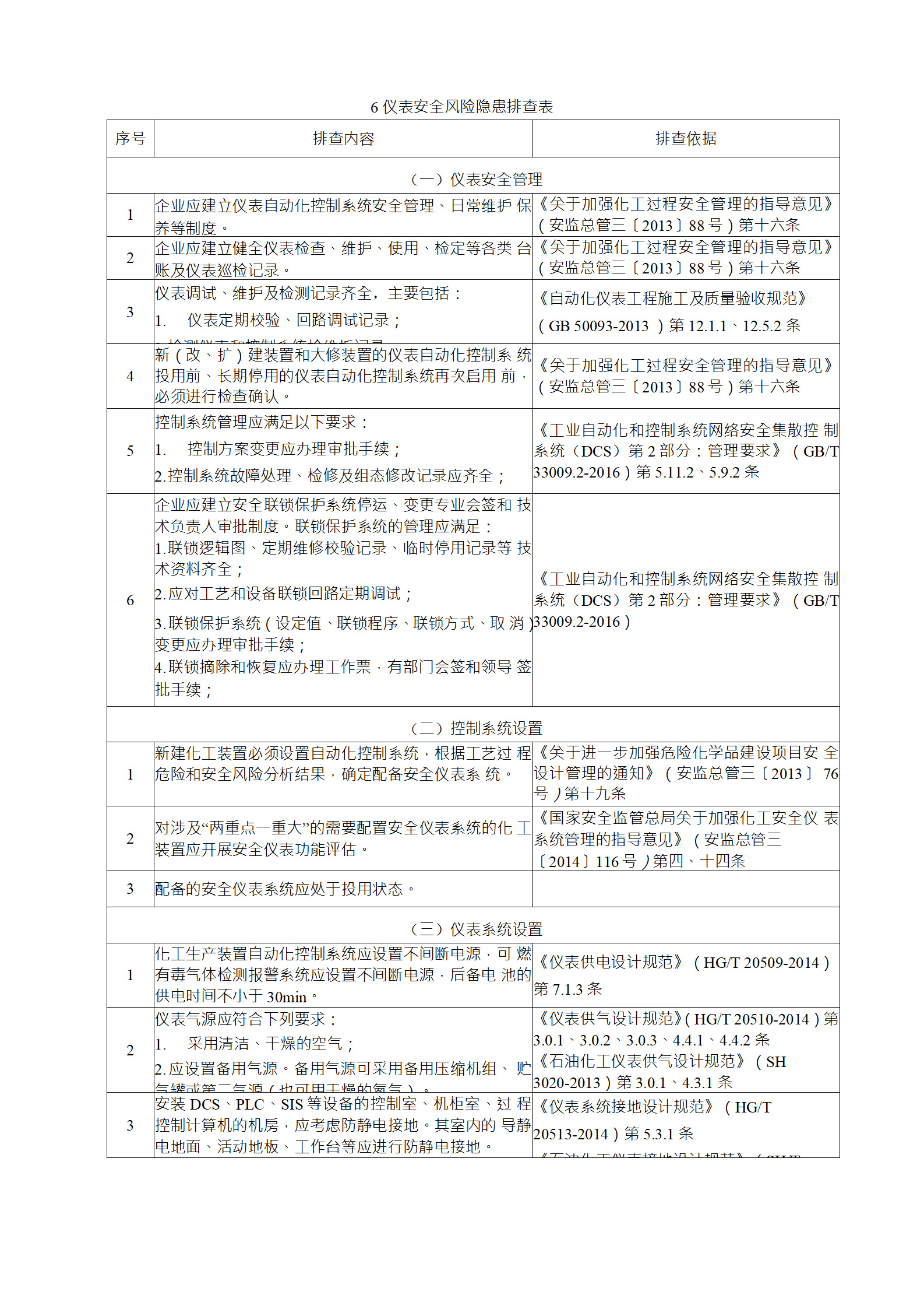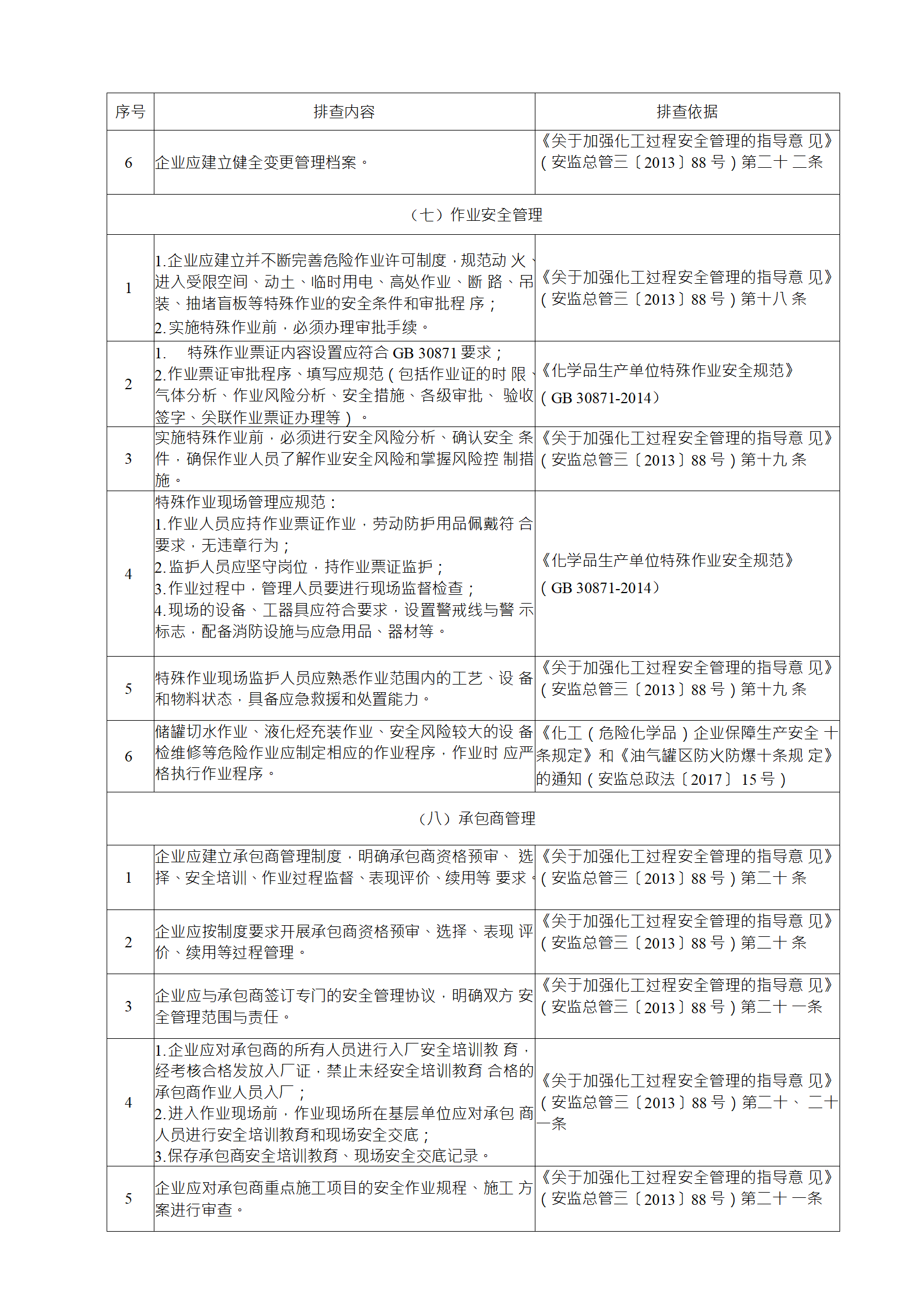 企業(yè)應結(jié)合自身安全風險及管控水平,按照化工過程安全 管理的要求,參照各專業(yè)安全風險隱患排查表(見附件),編制 符合自身實際的安全風險隱患排查表,開展安全風險隱患排查 工作。