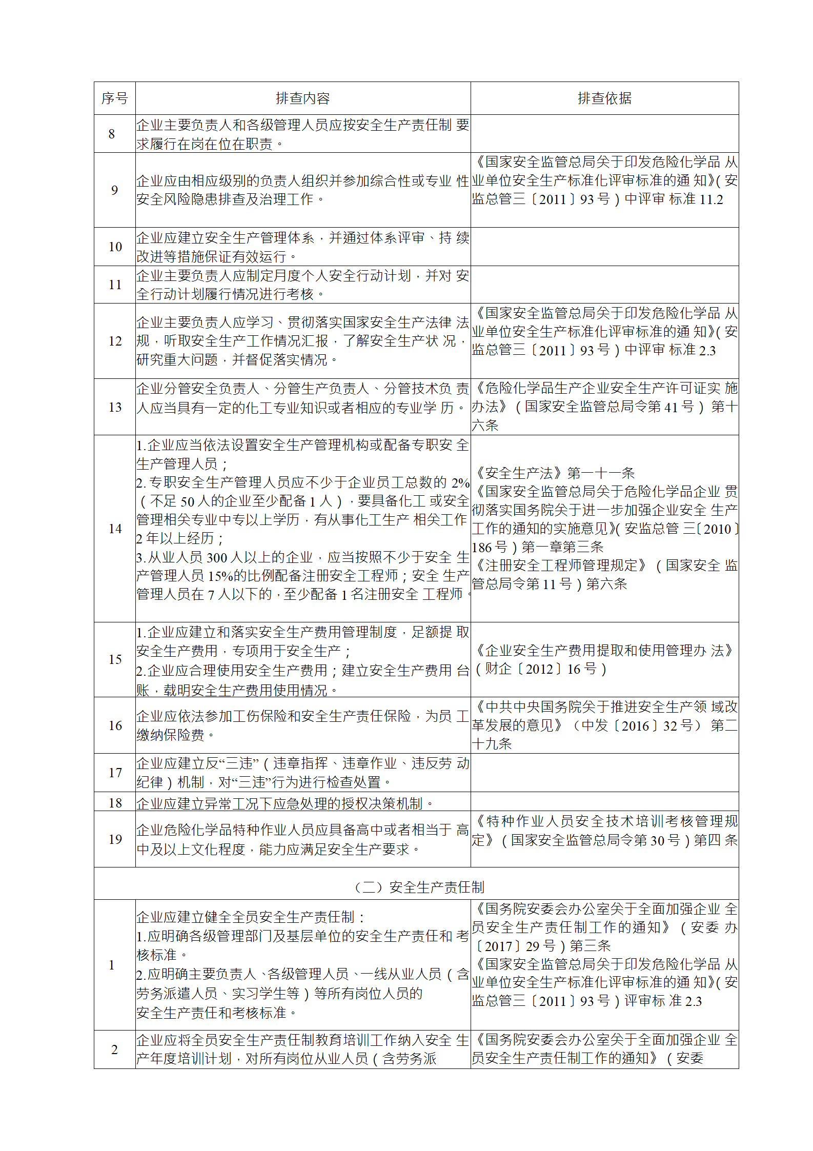 (2)綜合性排查是指以安全生產(chǎn)責任制、各項專業(yè)管理制 度、安全生產(chǎn)管理制度和化工過程安全管理各要素落實情況為重點開展的全面檢查;