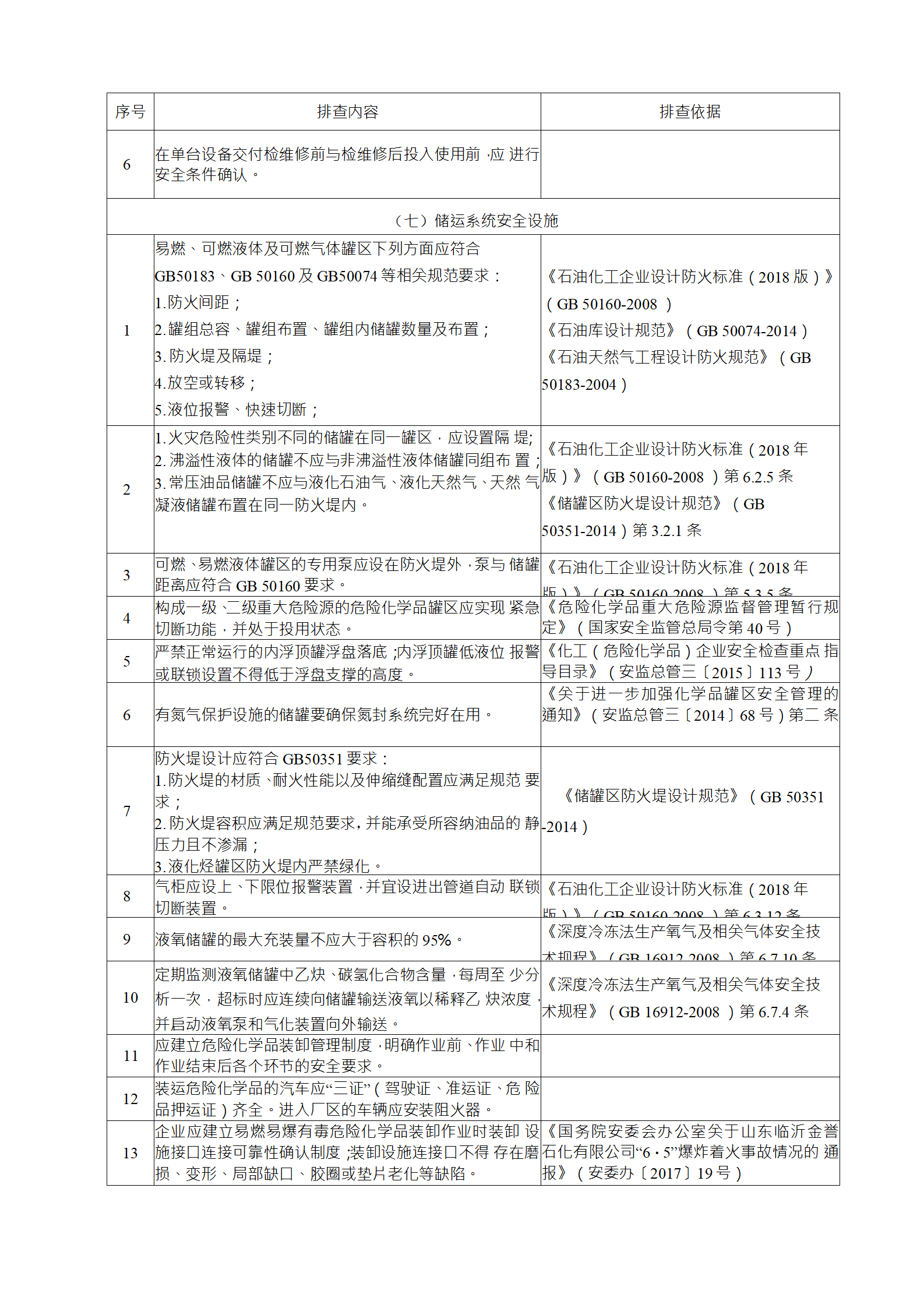 (2)儲運系統(tǒng)設施的安全設計、安全控制、應急措施的落 實;