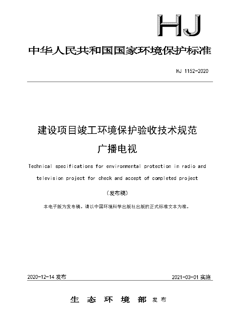 四、《建設(shè)項目竣工環(huán)境保護驗收技術(shù)規(guī)范 廣播電視》(HJ 1152-2020)