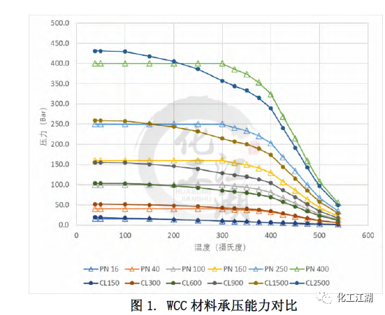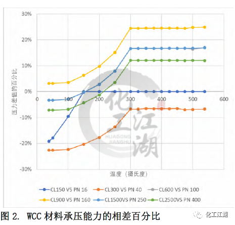 本文采用了對(duì)比冷(常溫)工作壓的方法來近似推算出與ASME標(biāo)準(zhǔn)Class壓力等級(jí)最鄰近的EN標(biāo)準(zhǔn)PN壓力等級(jí)。EN12516-1標(biāo)準(zhǔn)中列出的所有材料的冷工作壓都是相同的。而ASME B16.34標(biāo)準(zhǔn)中列出的冷工作壓和材料相關(guān),故選取了其中一種較強(qiáng)材料(C12A)的冷工作壓用于對(duì)比。 通過對(duì)比得到每個(gè)ASME標(biāo)準(zhǔn) Class壓力等級(jí)對(duì)應(yīng)的最鄰近的EN標(biāo)準(zhǔn) PN壓力等級(jí),見表1。同時(shí),這樣的對(duì)應(yīng)關(guān)系也和閥門設(shè)計(jì)的通用做法一致。本文的管道內(nèi)徑,最小壁厚,材料承壓能力的對(duì)比都是依照表1中的對(duì)應(yīng)關(guān)系來進(jìn)行的。 1.2 材質(zhì)承壓能力的對(duì)比 無論是ASME標(biāo)準(zhǔn)還是EN標(biāo)準(zhǔn)都列出了一些ASTM標(biāo)準(zhǔn)材料的壓力溫度等級(jí),即材料在不同溫度下的承壓能力。本文選取了常見的閥體材料:碳鋼WCC,合金鋼 WC9和C12A進(jìn)行研究,來對(duì)比兩個(gè)標(biāo)準(zhǔn)中相同材料在標(biāo)準(zhǔn)壓力等級(jí)下的承壓能力的差別。 圖1和圖 2顯示了WCC材料的溫度壓力曲線和Class與PN的對(duì)比,可以看出: (1)對(duì)于ASME的 Class 150和EN12516-1 的PN16,當(dāng)溫度低于150攝氏度時(shí),EN標(biāo)準(zhǔn)規(guī)定的材料承壓能力低于ASME標(biāo)準(zhǔn)規(guī)定的材料承壓能力,且隨著溫度升高,差距逐漸縮小。當(dāng)溫度高于150攝氏度時(shí),兩個(gè)標(biāo)準(zhǔn)對(duì)相同材料的承壓能力的規(guī)定近乎相同。 (2)對(duì)于ASME的 Class 300和EN12516-1 的PN40,在整個(gè)溫度的范圍內(nèi),EN標(biāo)準(zhǔn)規(guī)定的材料承壓能力均低于ASME標(biāo)準(zhǔn)規(guī)定的材料承壓能力。當(dāng)溫度低于300攝氏度時(shí),隨著溫度升高,差距逐漸縮小。當(dāng)溫度高于300攝氏度時(shí),兩個(gè)標(biāo)準(zhǔn)對(duì)相同材料的承壓能力的規(guī)定差別趨于一致,約為-7%。 (3)對(duì)于ASME的 Class 900和EN12516-1 的PN160, 在整個(gè)溫度的范圍內(nèi),EN標(biāo)準(zhǔn)規(guī)定的材料承壓能力均高于ASME標(biāo)準(zhǔn)規(guī)定的材料承壓能力。當(dāng)溫度低于300攝氏度時(shí),隨著溫度升高,差距越來越大。當(dāng)溫度高于300攝氏度時(shí),兩個(gè)標(biāo)準(zhǔn)對(duì)相同材料的承壓能力的規(guī)定差別趨于一致,約為24%。 (4)還有一點(diǎn)值得注意的,除了PN16,其他PN壓力等級(jí)對(duì)應(yīng)的工作壓力在低于300攝氏度以下都是一樣的,而ASME等級(jí)對(duì)應(yīng)的工作壓力是隨著溫度升高持續(xù)下降的。 1.3 對(duì)閥體設(shè)計(jì)的指導(dǎo) 在實(shí)際設(shè)計(jì)過程中,無論是為了縮短新產(chǎn)品推向市場的時(shí)間,還是從產(chǎn)品標(biāo)準(zhǔn)化、成本優(yōu)化的角度去考慮,盡可能多地將已有的設(shè)計(jì)或者零部件(尤其是需要開發(fā)鑄造模具的閥體)應(yīng)用到新的產(chǎn)品中,都是設(shè)計(jì)師不可避免要考慮的問題,可以采用同一個(gè)閥體鑄件的設(shè)計(jì)來滿足ASME 標(biāo)準(zhǔn)和EN標(biāo)準(zhǔn)的要求呢?為了解答這個(gè)問題,本文選取了三個(gè)不同壓力等級(jí)-低、中、高的十二個(gè)具體實(shí)例,各項(xiàng)參數(shù)的對(duì)比結(jié)果如表3 所示。 (1)低壓ASME Class 300與 EN PN40 從表3中差別的百分?jǐn)?shù)可以看出,在兩個(gè)尺寸下,滿足ASME標(biāo)準(zhǔn)和EN 標(biāo)準(zhǔn)的管道內(nèi)徑和最小壁厚的差別,均小于5%。就是說,用同一個(gè)閥體設(shè)計(jì)來滿足兩個(gè)標(biāo)準(zhǔn)的設(shè)計(jì)要求是可以接受的。同時(shí)從圖2中可以看出,閥體常見材料在這兩個(gè)等級(jí)的承壓能力差別也較小,10%以內(nèi)。因此,兩個(gè)設(shè)計(jì)可以在類似的實(shí)際工況中應(yīng)用。 (2)中壓ASME Class 900與 EN PN160 對(duì)于中壓下尺寸為DN100和DN200的兩組設(shè)計(jì),從差別的百分?jǐn)?shù)可以看出,雖然每組中要對(duì)比的兩個(gè)設(shè)計(jì)的管道內(nèi)徑非常接近,但是所要求的最小壁厚卻相差較多,超過了20%。在這種情況下,實(shí)踐中也是可以用同一個(gè)閥體設(shè)計(jì)來滿足兩個(gè)標(biāo)準(zhǔn)的設(shè)計(jì)要求的,但是需要評(píng)估由此帶來的對(duì)最小壁厚要求較小的閥體的成本的影響。另一方面,從圖2中可以看出,閥體常見材料在這兩個(gè)等級(jí)的承壓能力差別較大,在有些溫度下差別達(dá)到20%。這種材料承壓能力上的差別和最小壁厚的差別是一致的。 (3)高壓ASME Class 2500與EN PN400 對(duì)于高壓下尺寸為DN100和DN200,閥門的管道內(nèi)徑和最小壁厚存在著巨大差別,30%-50%,故采用同一個(gè)閥體設(shè)計(jì)來滿足兩個(gè)標(biāo)準(zhǔn)的設(shè)計(jì)要求是不合理的。 還有另外一個(gè)因素需要在閥體設(shè)計(jì)時(shí)考慮,那就是閥體兩個(gè)端口之間的長度。ASME B16.34中指出可以按照ASME B16.10來確定端口對(duì)端口尺寸。EN12516-1 并未提及端口對(duì)端口尺寸,但歐標(biāo)體系中EN558規(guī)定了端口對(duì)端口的尺寸??紤]到端口對(duì)端口尺寸并非標(biāo)準(zhǔn)強(qiáng)制要求,故本文未提供ASME B16.10和EN558的區(qū)別。 (1)管道內(nèi)徑 ASME標(biāo)準(zhǔn)和EN標(biāo)準(zhǔn)在管道內(nèi)徑的主要差別在于管道內(nèi)
