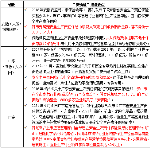 點評:可以看出,這個文主要還是國務院應急管理部發(fā)的,但是也牽涉到財政、銀保監(jiān)會等機構(gòu),為什么會涉及財政部門,小編以為可能后續(xù)會有一些財政補貼的措施,從各地實施情況來看,不少地方都有一些相應經(jīng)費。