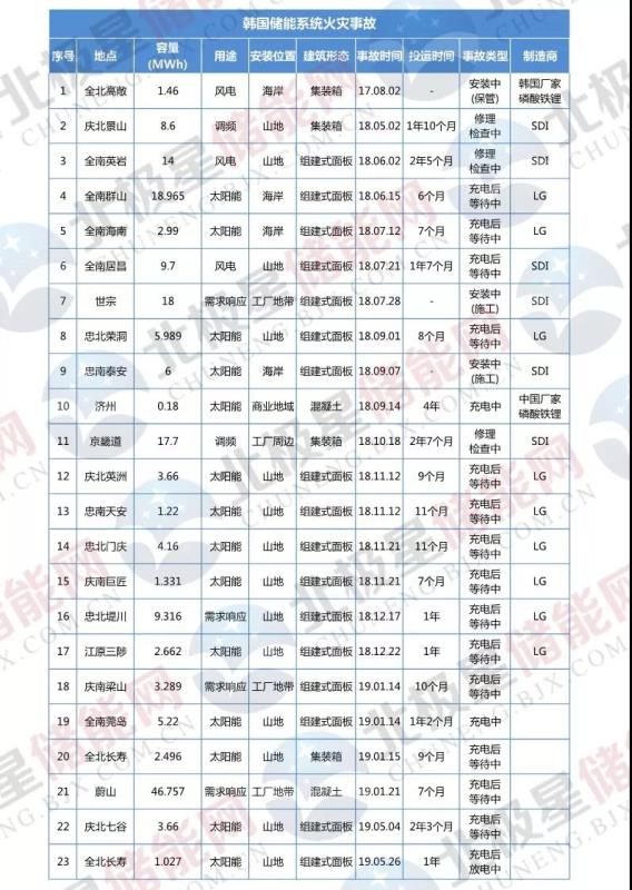 韓國政府公布23起儲能電站火災(zāi)事故調(diào)查結(jié)果 并提出四大改善措施