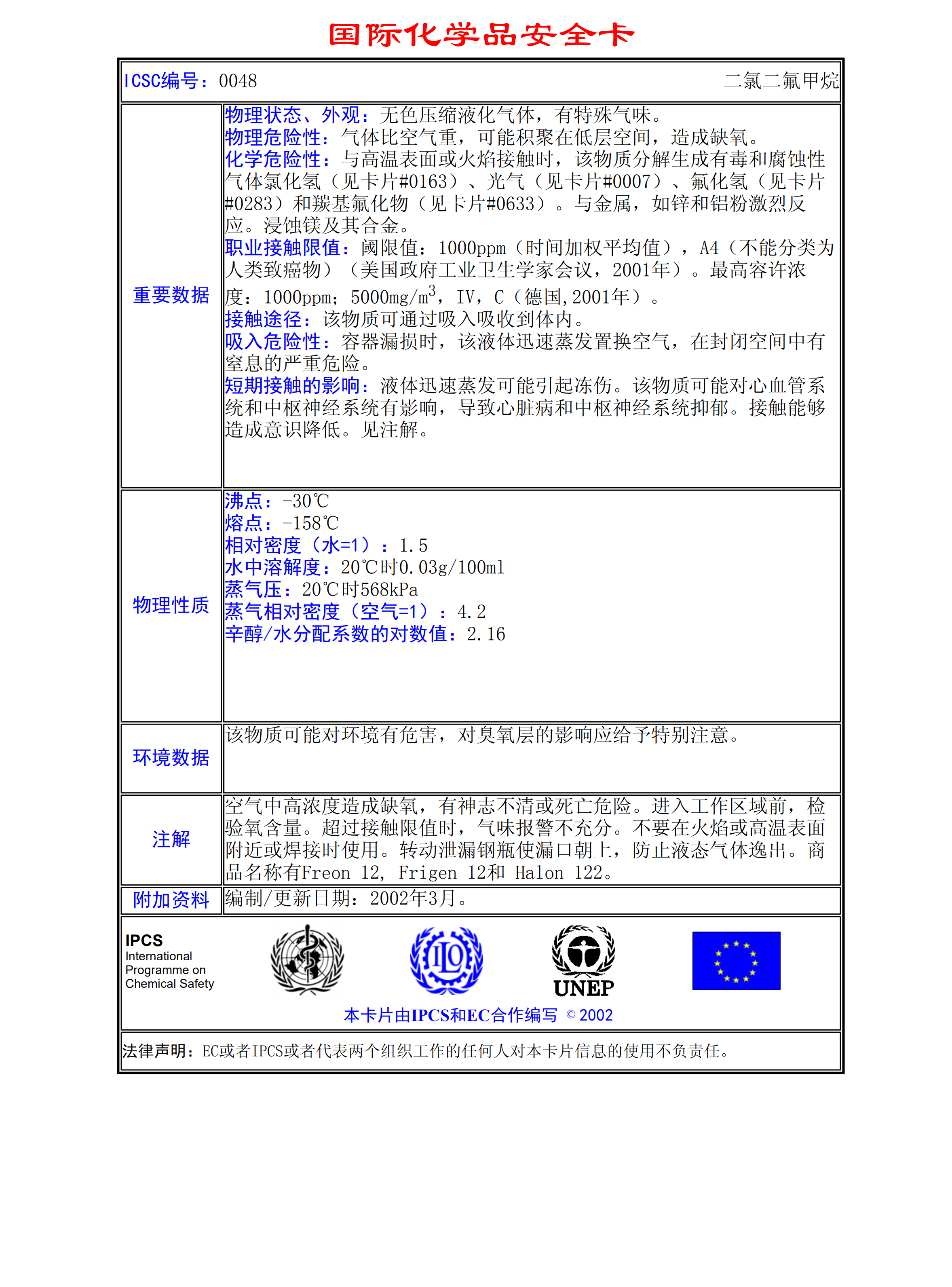 二氯二氟甲烷MSDS