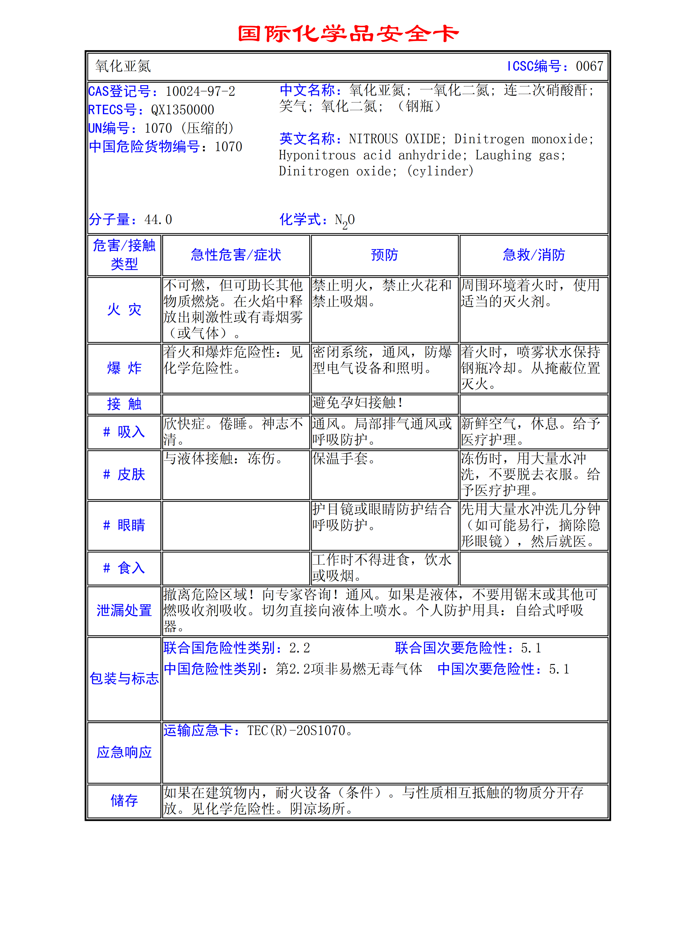 氧化亞氮MSDS