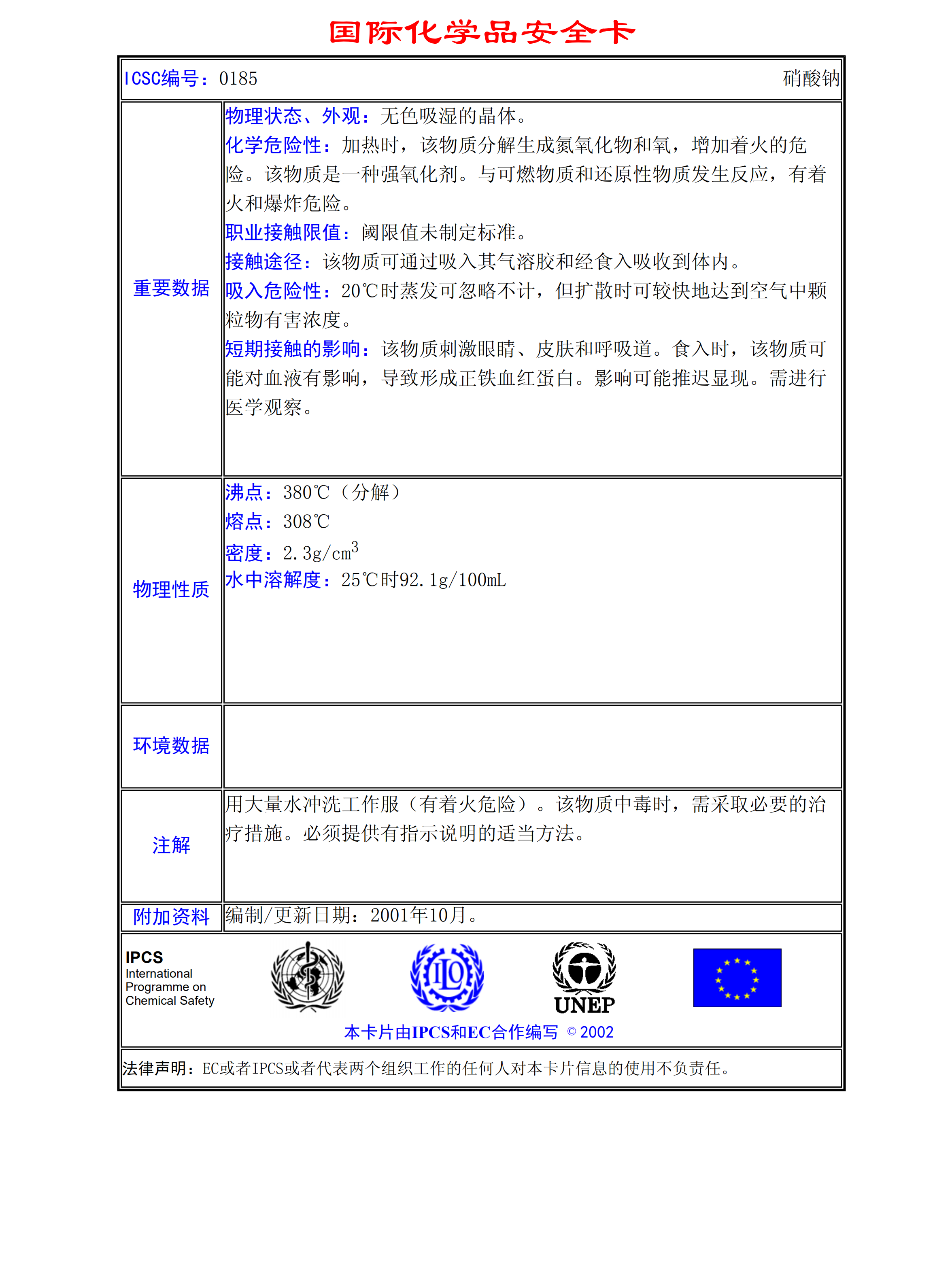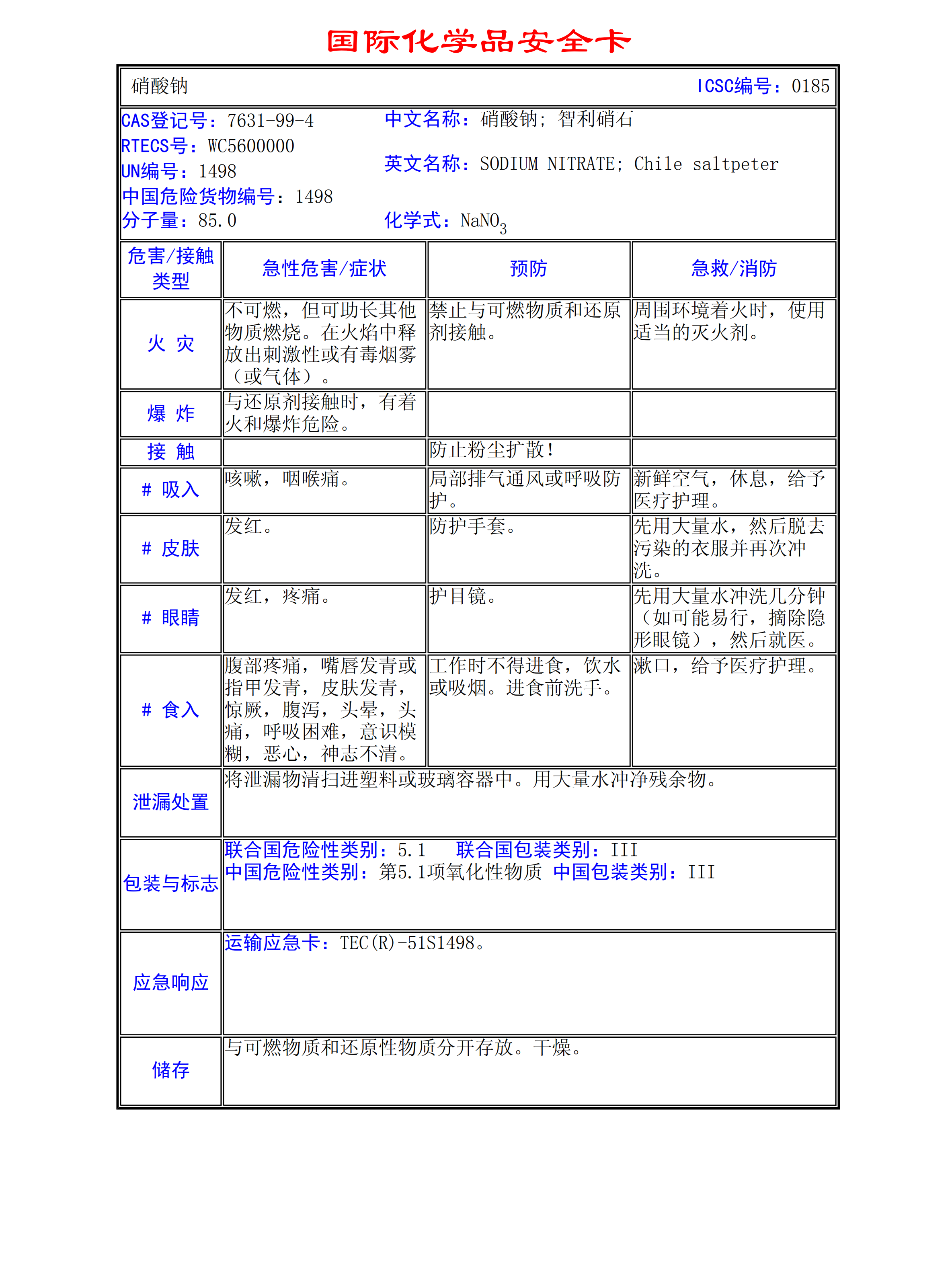 硝酸鈉MSDS