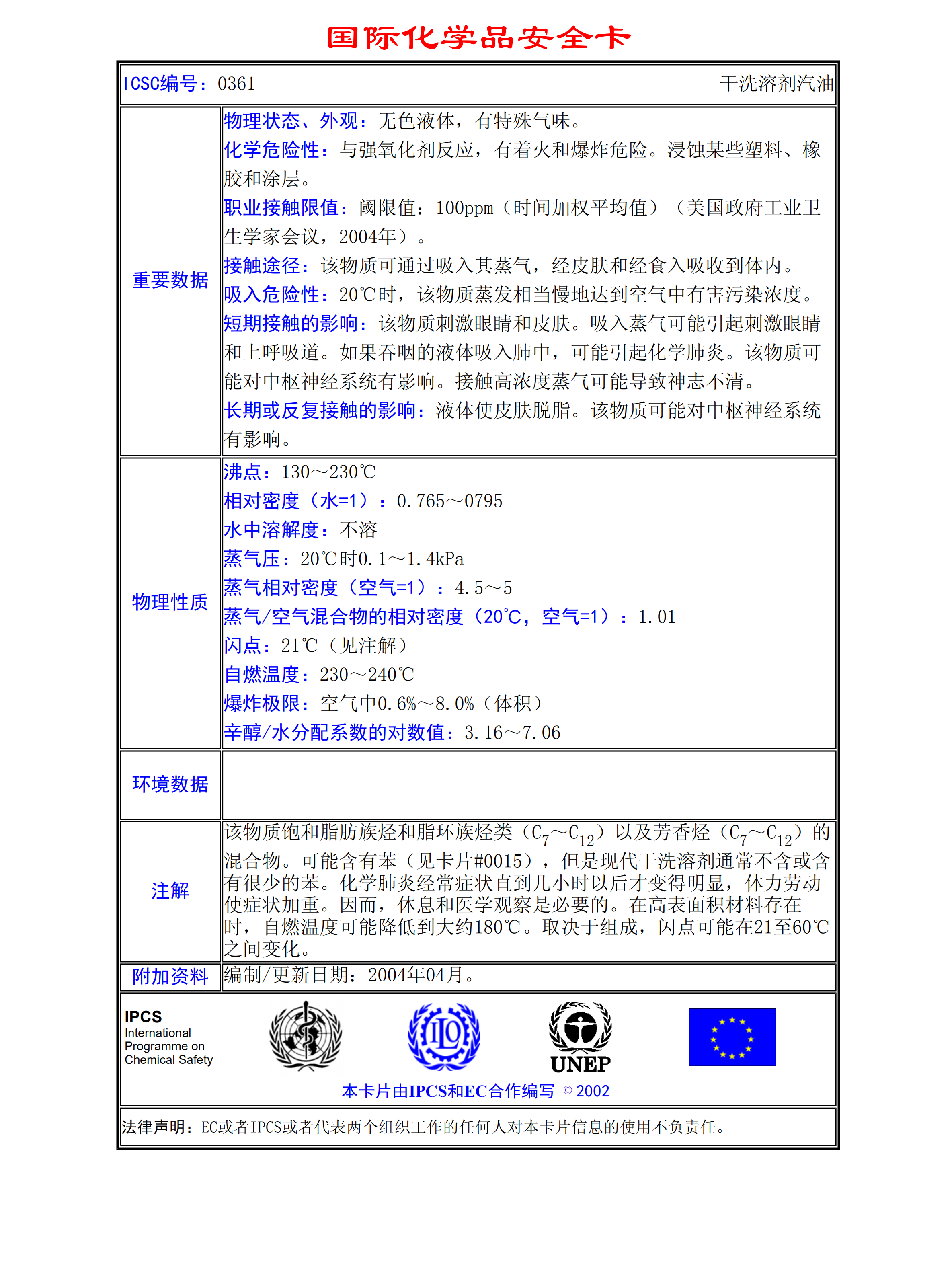 干洗溶劑汽油MSDS