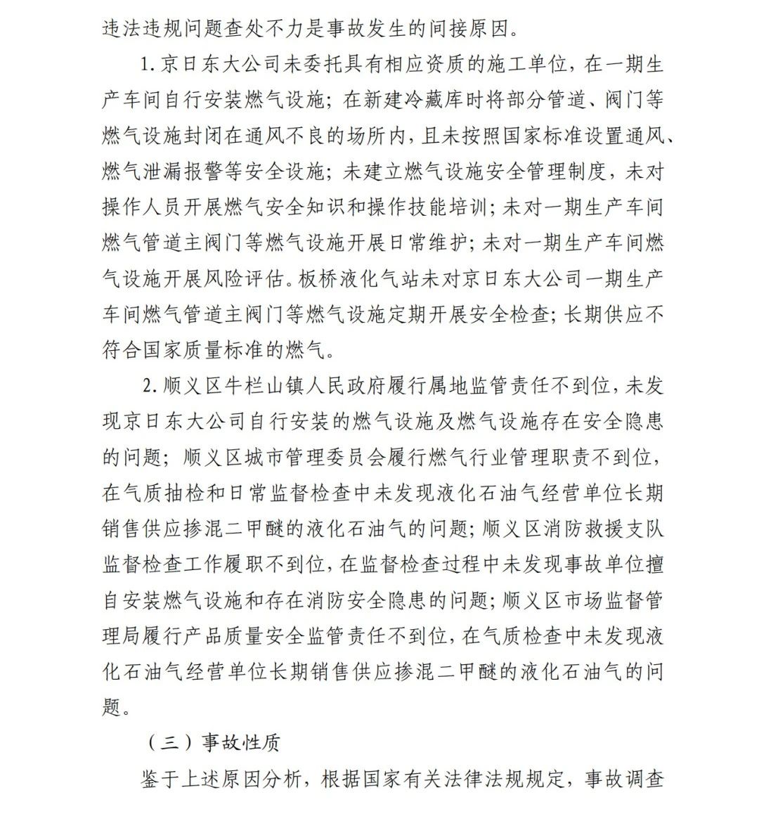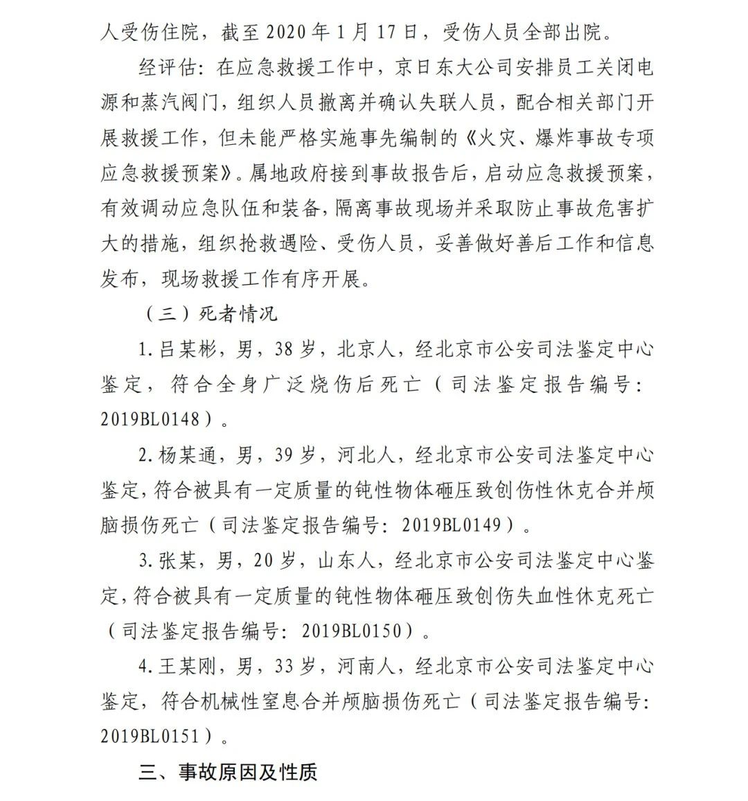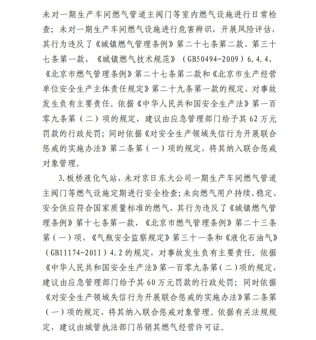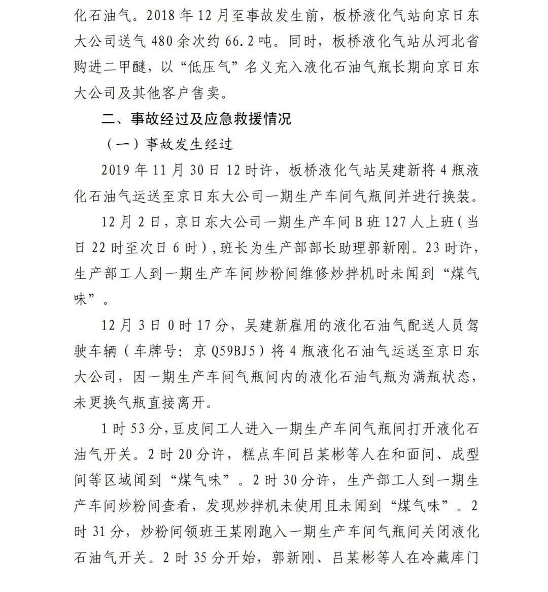 2019年12月3日2時(shí)43分許,北京順義區(qū)牛欄山鎮(zhèn)的(以下簡稱“京日東大公司”)一期生產(chǎn)車間內(nèi)發(fā)生燃?xì)獗ㄊ鹿?,造?人死亡,10人受傷,直接經(jīng)濟(jì)損失1429.563萬元。