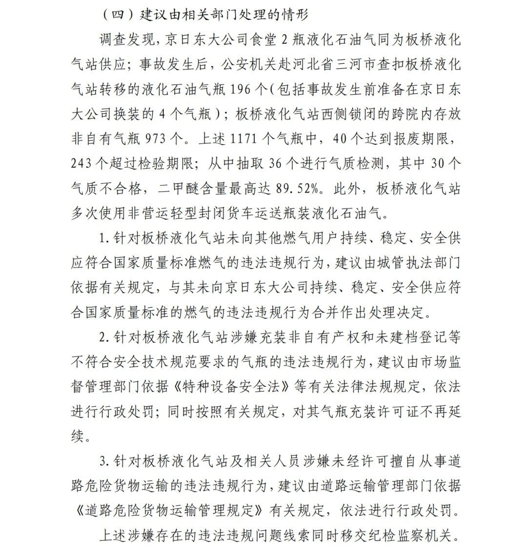 4.方勇忠,曾先后擔(dān)任京日東大公司生活部副部長兼設(shè)備部部長助理、設(shè)備部部長、生產(chǎn)部部長兼設(shè)備部部長、總經(jīng)理助理(2019年4月辭職)。2006年負(fù)責(zé)京日東大公司一期生產(chǎn)車間建設(shè)工作,期間未委托具有相應(yīng)資質(zhì)的施工單位,組織本單位人員自行建設(shè)安裝燃?xì)庠O(shè)施,導(dǎo)致燃?xì)庠O(shè)施安全隱患長期存在;2018 年負(fù)責(zé)一期生產(chǎn)車間內(nèi)新建冷藏庫建設(shè),將部分管道、閥門等燃?xì)庠O(shè)施封閉在通風(fēng)不良的場所內(nèi),且未設(shè)置通風(fēng)、燃?xì)庑孤﹫?bào)警等安全設(shè)施,對事故發(fā)生負(fù)有直接責(zé)任,涉嫌重大責(zé)任事 故罪。2020 年 1 月 23 日被順義公安分局刑事拘留,2 月 6 日取 保候?qū)?,建議依法追究刑事責(zé)任。