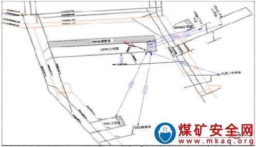 圖 2 2305S 工作面到各采掘地點(diǎn)距離示意圖