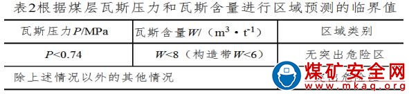 (1)區(qū)域突出危險(xiǎn)性預(yù)測(cè)采用直接測(cè)定法測(cè)定煤層瓦斯含量 W 和煤層瓦斯壓力 P,由鉆機(jī)隊(duì)施工 4 個(gè)預(yù)測(cè)孔,防突工負(fù)責(zé)現(xiàn)場(chǎng)監(jiān)督、采集數(shù)據(jù),出具突出危險(xiǎn)性預(yù)測(cè)報(bào)告單,經(jīng)防突隊(duì)、科、礦有關(guān)領(lǐng)導(dǎo)審核簽字確認(rèn)后執(zhí)行區(qū)域防突措施。