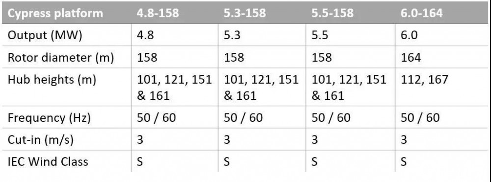 據(jù)了解,GE Cypress 5.3MW-158機型于2018年底上市,采用創(chuàng)新型兩段式碳纖維葉片。據(jù)GE稱,“Cypress”平臺的設計旨在全生命周期內(nèi),使GE能夠提供更廣泛的額定功率覆蓋范圍和輪轂高度,以滿足5MW范圍內(nèi)的客戶需求。與GE的3 MW機組相比,該平臺在平臺壽命期內(nèi)的年發(fā)電量(AEP)可以增加50%。