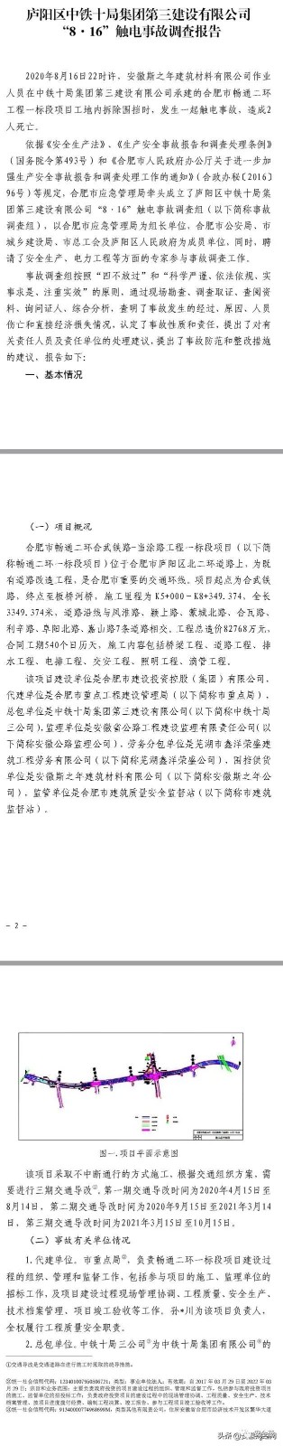 12月2日,合肥應急管理局在其官網(wǎng)發(fā)布廬陽區(qū)中鐵十局集團第三建設有限公司 “816”觸電事故調(diào)查報告。