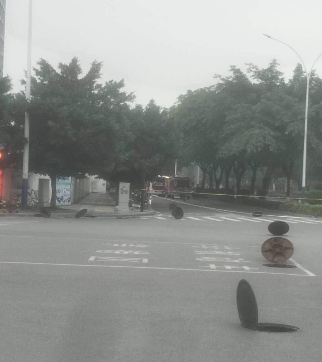 所有井蓋都立了起來,網(wǎng)友推測可能是在“通氣”