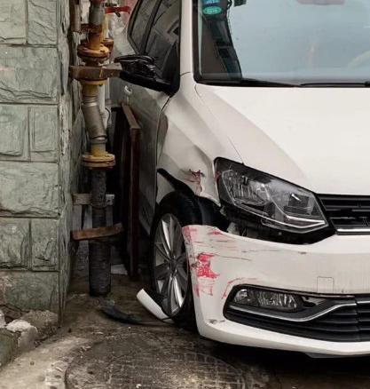 經(jīng)了解,小區(qū)住戶薛某當天駕駛著一輛白色大眾小轎車回家,開到事發(fā)地時,薛某感覺車子后面撞到了什么東西,一時緊張就猛打方向盤,結果導致車子不停在原地打轉(zhuǎn),不但撞壞了周圍的天然氣管道、消防栓,停在附近的三輛私家車也不同程度受損。