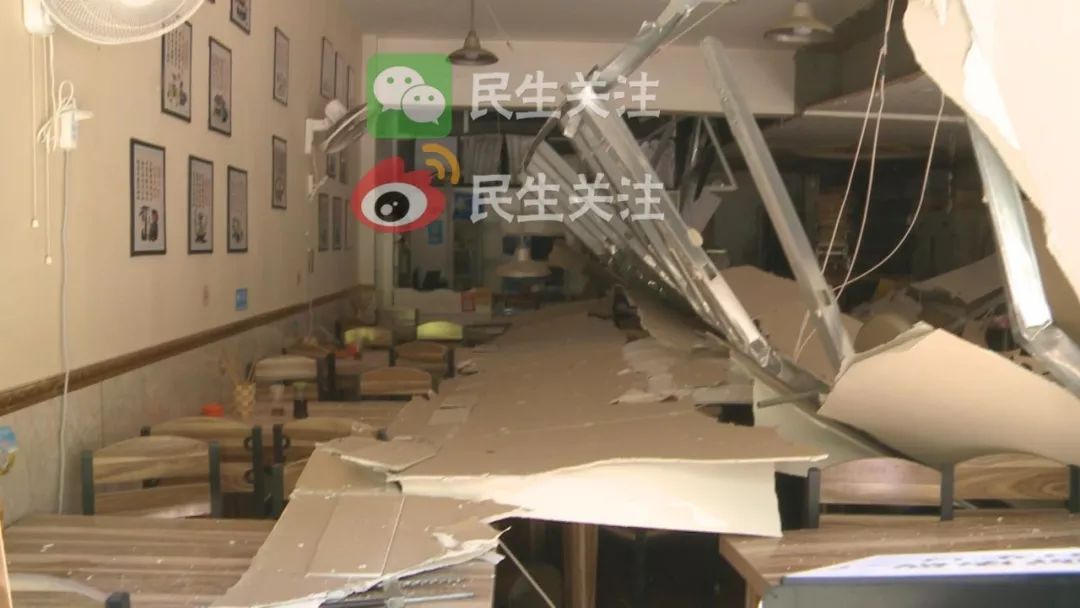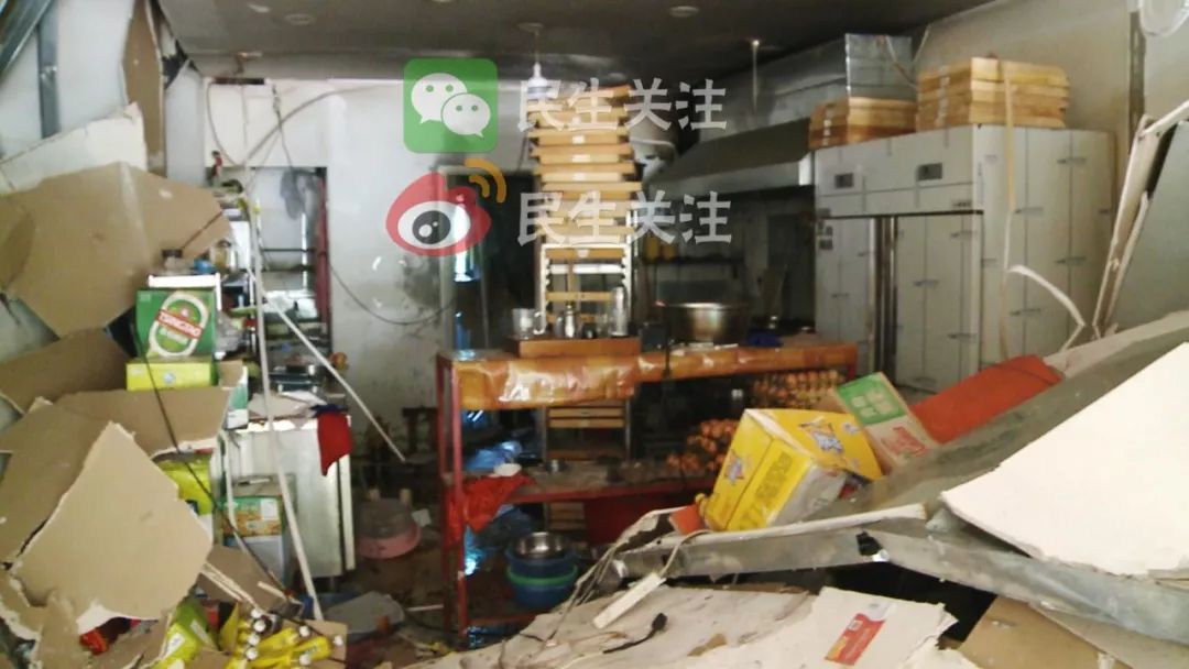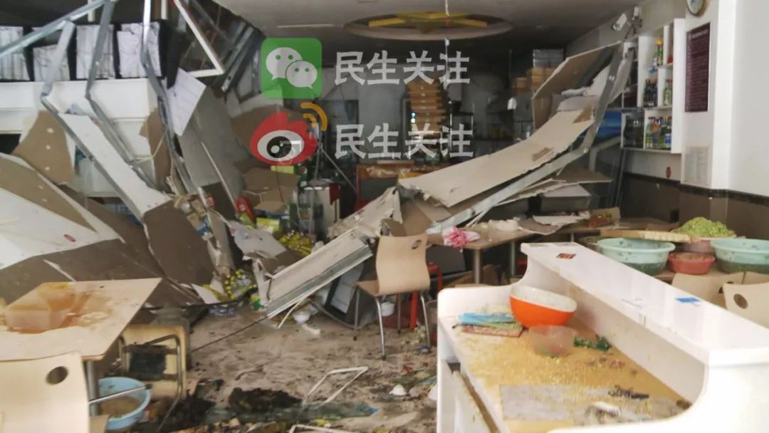 由于爆炸沖擊力過大,把緊鄰旁邊的過橋米線館北側(cè)墻崩倒,門口兩扇門玻璃被震碎。幸好當(dāng)時飯店里人都及時跑了出來,沒有人員傷亡。