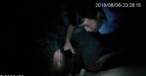 (圖為民警符亞軍對男子進行喂水施救。警方供圖)