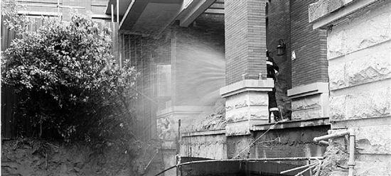 消火栓取水時,新的問題出現(xiàn)了?!跋浪ㄔ谝惶幓趬Ω浇鏊诰o貼著墻面,根本就沒辦法用?!睘榱瞬坏⒄`救援工作,消防官兵立即用器材對消火栓周邊墻壁進行處置,留出足夠的空間供水帶取水。